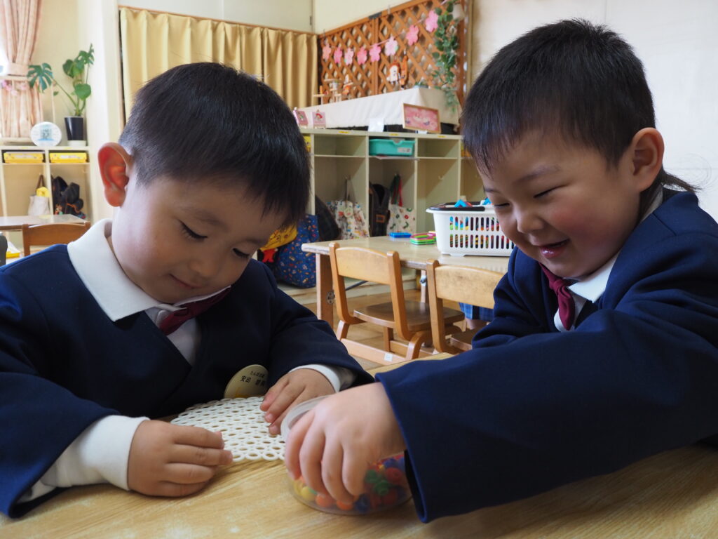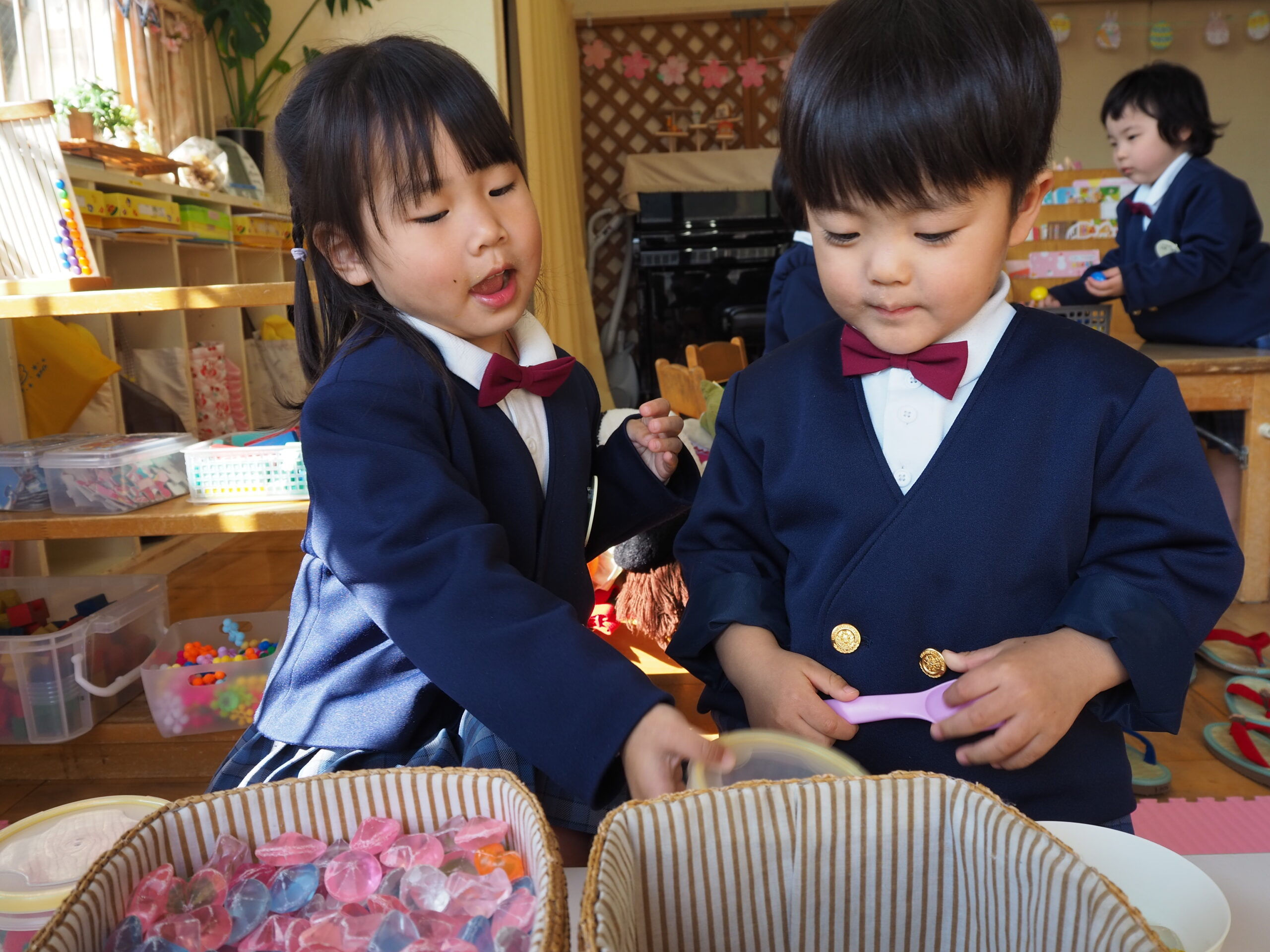 一緒に遊ぼう!(たんぽぽ、3歳児) 公開済み: 2026年4月13日更新: 2026年4月13日作成者: hayamanookaカテゴリー: 端山の丘こども園ブログ 新しいお部屋になり、おもちゃも新しくなってウキウキ💕遊びを通じてお友達との関わりを学んでいきます。 関連記事 バス、発車しまーす!(うさぎ0歳児、1歳児) 毎日楽しんで体を動かしています! また、跳び箱がバスに変身し、みんなでバスごっこをして楽しんでいました。 公開済み: 2025年10月16日更新: 2025年10月16日作成者: hayamanookaカテゴリー: 端山の丘こども園ブログ 真剣な眼差し!(ゆり、5歳児) コンピューター教室では、プログラミングを習っています。二人一組になり、協力して動物を動かそうと頑張っています。 公開済み: 2024年5月1日更新: 2024年5月1日作成者: hayamanookaカテゴリー: 端山の丘こども園ブログ とっても美味しそう~(さくら、4歳児) そうめんデコレーションをしました。クラスで話し合った具材をトッピングしました。 公開済み: 2023年9月8日更新: 2023年9月8日作成者: hayamanookaカテゴリー: 端山の丘こども園ブログ