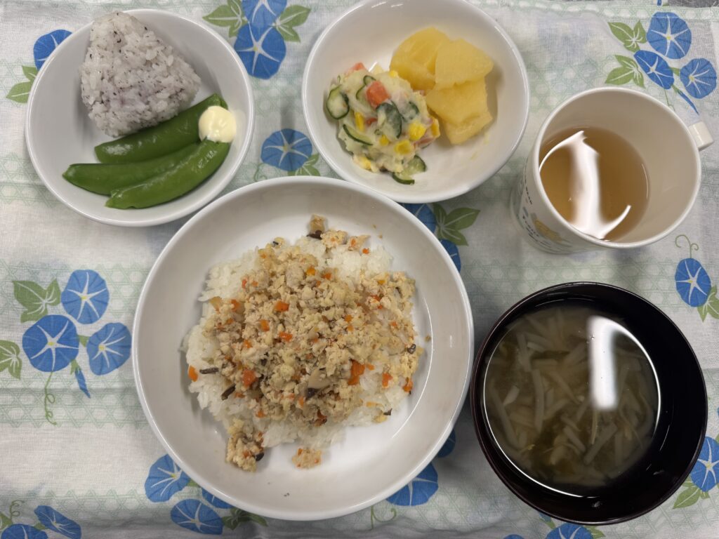 おやつのスナップエンドウは、きりん組さん、さくら組さん、ゆり組さん、たくさんのお友達が、筋を取るお手伝いをしてくれました。力のいる筋取りですが、とても上手にお手伝いしてくれました。