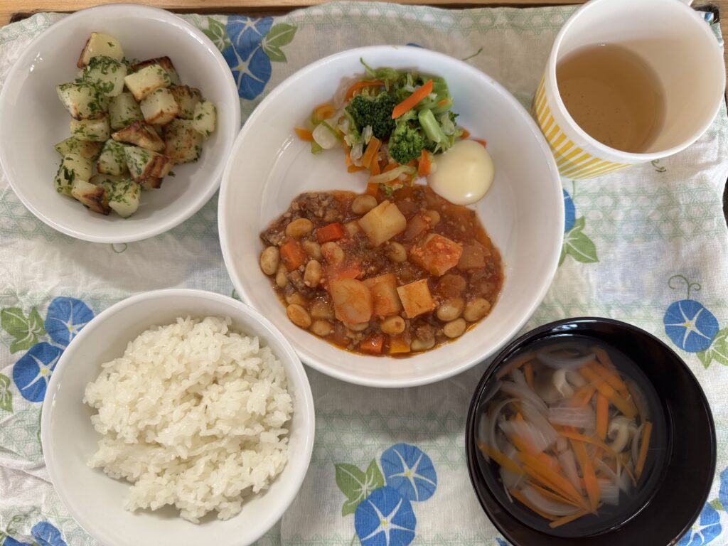 4月17日(金)の給食とおやつ 公開済み: 2026年4月17日更新: 2026年4月17日作成者: sakuranosatoカテゴリー: さくらの里保育園, さくらの里保育園園・給食だより 【給食】 ・ごはん ・きのこスープ ・チリコンカン ・添えボイル野菜(マヨドレ) 【おやつ】 ・じゃがいもの唐揚げ