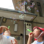 シャボン玉を楽しみました。風が吹いていて、お空まであっという間に飛んでいきました。その詩型を見て、みんな大喜びしていました!!