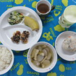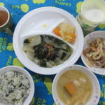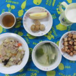<給食> 御飯 すまし汁(だいこん・油揚げ) 鶏の海苔焼き 小松菜のしらすサラダ(キャベツ) バナナ <おやつ> 牛乳 さけわかめおにぎり(わかめ・ごま) さくら・ゆり組は遠足の為、給食の提供はあ […]