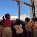 「こうえんにいく~」と楽しそうな子ども達。靴箱の前では自分たちで靴を履こうと頑張っています。 自分の靴を持ってきて、【こうかなぁ~】と足を入れています。出来ない時は手伝ってもらって、みんなで公園へ「行ってきま~す☆」
