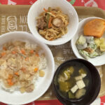 【給食】 ごはん わかめスープ 鶏肉のマーマレード焼き ひじきのソテー 【おやつ】 わかめおにぎり