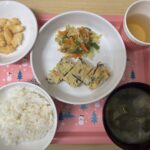 【給食】 ごはん 中華スープ カレーマーボー豆腐 はくさいとわかめの中華和え 【おやつ】 ひじきチャーハン