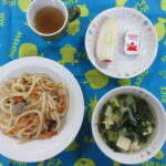 <給食> 焼きうどん わかめスープ(もやし) りんご ベビーチーズ