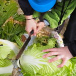 キッズファーム(農業体験)で冬野菜の収穫をしました。秋に種まきをした野菜が、立派に生長していてみんな大喜びでした。収穫した野菜は、鍋にしていただきます。