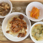 【給食】 秋のきのこスパゲティー 人参とみかんのサラダ 白菜のスープ 【おやつ】 焼きうどん