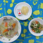 今日は「収穫祭」でした! さくら・ゆり組さんがブレンドファームの皆さんと一緒に育てた冬野菜をたっぷり使ってお鍋を作りましたよ♪ <給食> 鍋パーティー わかめおにぎり みかん(乳児) りんご(幼児) < […]