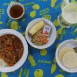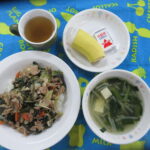 <給食> 豚丼 豆腐スープ(もやし・にら) ベビーチーズ バナナ