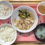 【給食】 ごはん はるさめスープ マーボー豆腐 ほうれん草のナムル 【おやつ】 フルーツヨーグルト和え