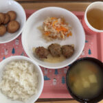 【給食】 ごはん みそ汁 肉団子の甘酢あん 切干大根の煮物 【おやつ】 ミレービスケット