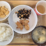 【給食】 ごはん みそ汁 白身魚の磯辺焼き ひじきのソテー 【おやつ】 とりそぼろおにぎり